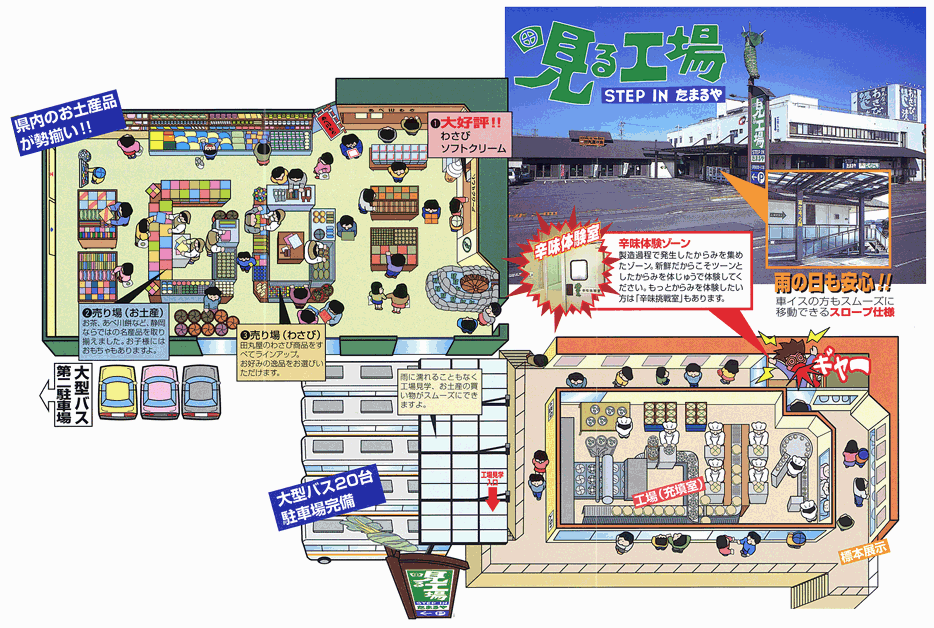 | 衛生的な最新鋭設備 | わさびを本格的に学べる展示室 | 辛味体験室もあります |